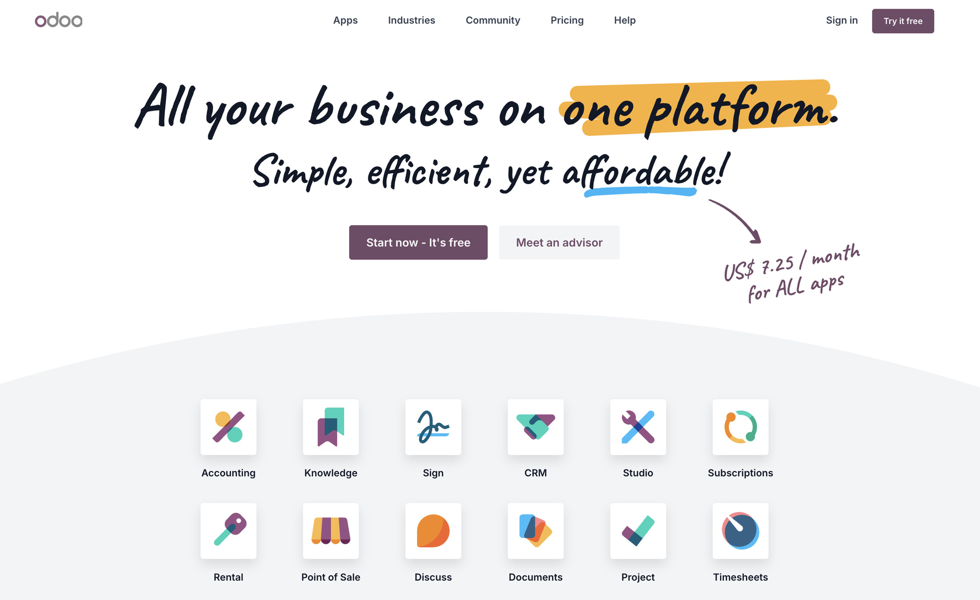 Odoo offers more than 40 integrated business applications, including: