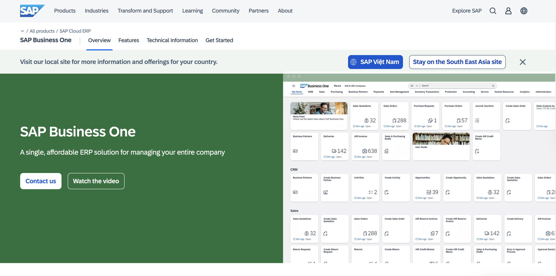 The ERP should support local tax systems, currencies, and regulations in Southeast Asia.