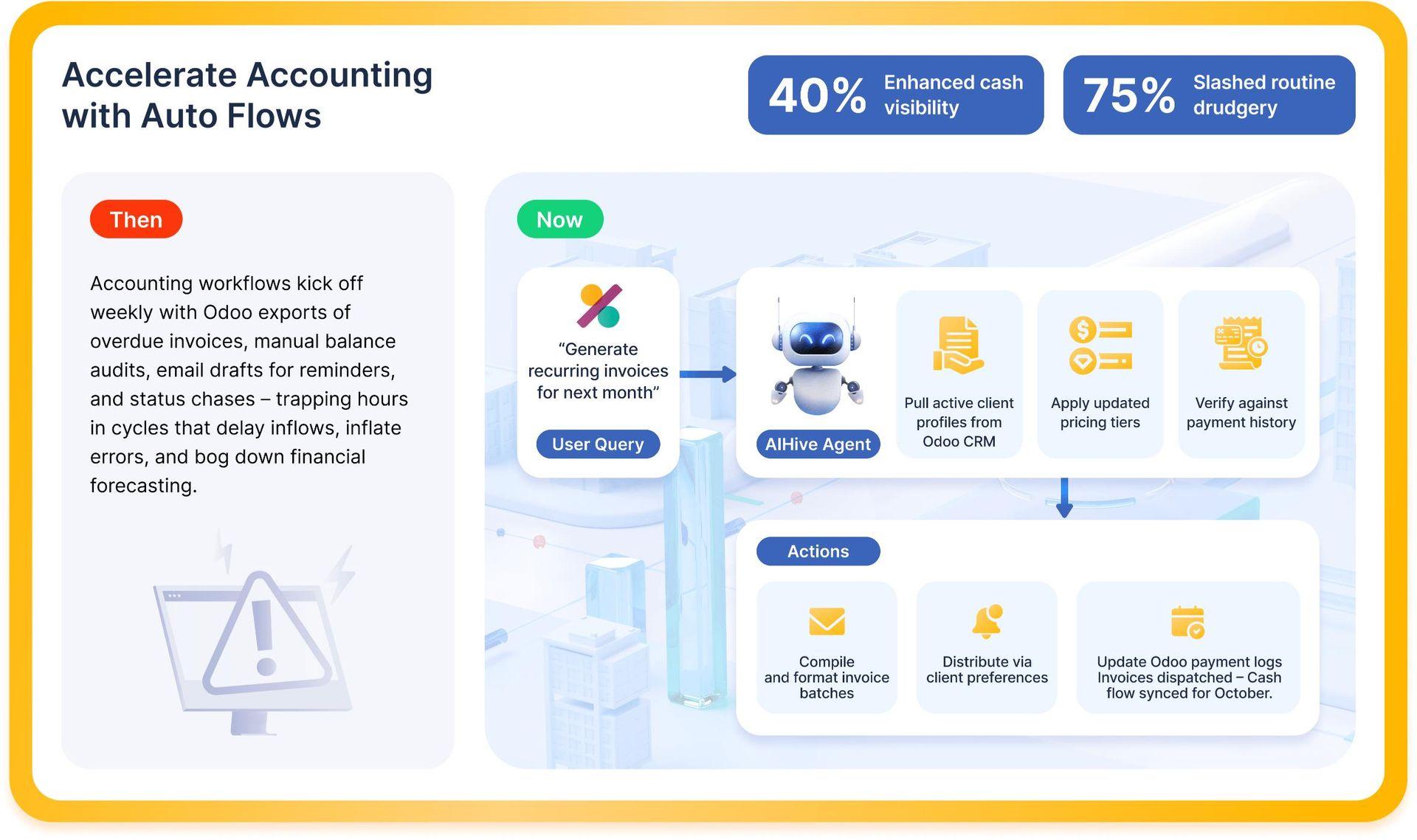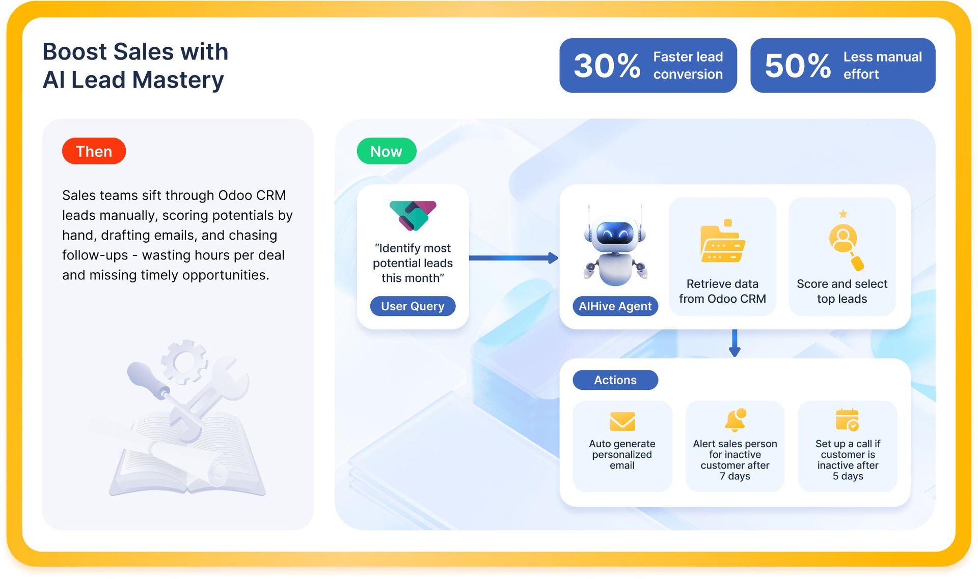 AIHive delivers smart, ready-to-go agents that transform your Odoo into a proactive powerhouse. From sales to HR, our AI tackles your toughest tasks with speed and precision – no complexity, just results tailored for your business.