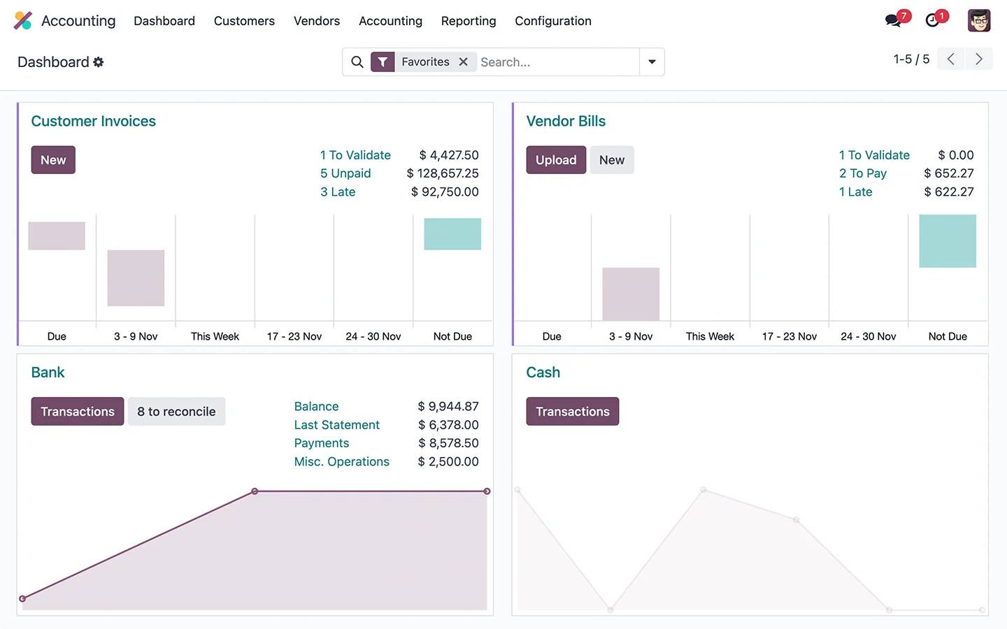 Odoo Accounting is the financial management app in the Odoo suite, designed to automate invoices, payments, bank reconciliations, and financial reporting for businesses of all sizes.