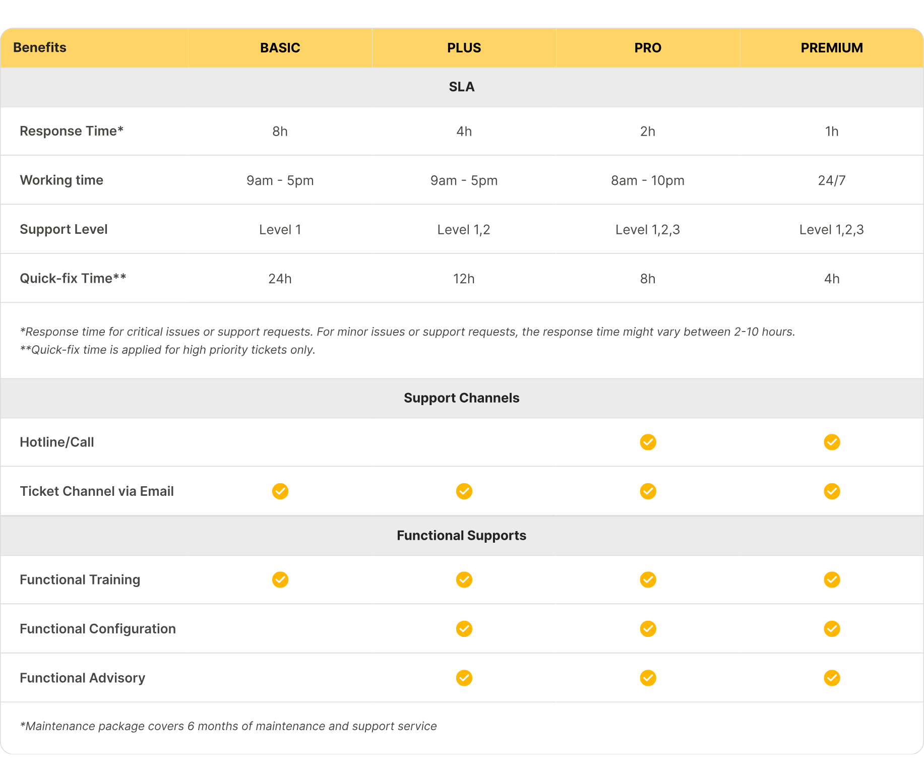 We provide 4 different Odoo service packages designed to meet your unique needs.